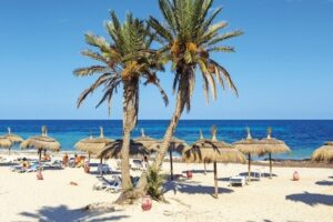 Djerba, nacházející se v jižní části Tuniska, je největším ostrovem severní Afriky a je známá svým okouzlujícím pobřežním prostředím. Tento ostrov leží v zálivu Gabès a je od pevniny oddělen úzkým průlivem. Strategická poloha ve Středomoří z něj udělala historicky významnou obchodní stanici a kulturní křižovatku. Krajina Djerby se vyznačuje zvlněnými písečnými dunami, palmovými háji a úrodnými pláněmi, které tvoří unikátní směs vyprahlého pouštního terénu a svěží zeleně. Jedním z nejcharakterističtějších rysů ostrova jsou tradiční bílé krychlové domy, které mu dodávají specifický a atraktivní vzhled. Ostrov je dále posetý olivovými sady, vinicemi a plantážemi datlových palem, což odráží jeho dlouhou zemědělskou tradici.