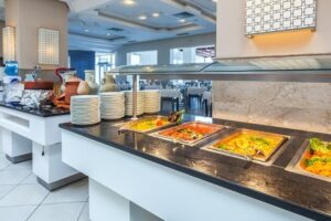Stravování je zajištěno programem All Inclusive, který zahrnuje plnou penzi formou bohatého bufetu, lehké občerstvení během dne a neomezené množství alkoholických a nealkoholických nápojů místní výroby od 10:00 do 24:00.