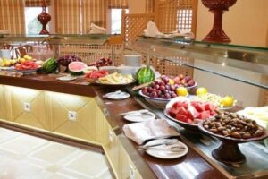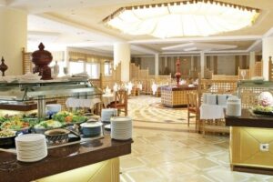 Stravování je zajištěno formou all-inclusive programu, který zahrnuje snídaně, obědy a večeře formou bufetu. Během dne jsou také k dispozici lehká občerstvení v podobě pizzy, sendvičů, salátů nebo ovoce. Hosté mohou vychutnávat nealkoholické a místní alkoholické nápoje od 09:00 do 02:00.
