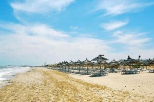 Další pozoruhodnou pláží je pláž Seguia, známá svou klidnou a klidnou atmosférou. Nachází se na východní straně Djerby a nabízí klidné útočiště daleko od rušných turistů. O něco dále na sever najdete pláž Ras Rmel, malebné místo obklopené bujnou vegetací a dunami. Tato pláž je ideální pro milovníky přírody a ty, kteří hledají útěk do ústraní. Kromě pláží na Djerbě se blízký region Zarzis na pevnině může pochlubit vlastním krásným pobřežím s lákavými plážemi, jako je pláž Sangho, která nabízí čisté modré vody a příležitosti k vodním aktivitám. Tyto pobřežní skvosty společně přispívají k půvabu Djerby jako přední turistické destinace v severní Africe a poskytují širokou škálu plážových zážitků, které vyhovují preferencím každého cestovatele.