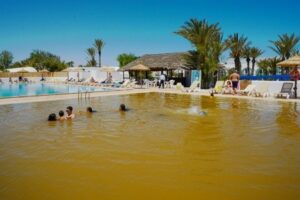 Co se týče přírodních zajímavostí, ostrov se může pochlubit fascinujícím muzeem Guellala, podzemní troglodytskou vesnicí, která nabízí pohled na unikátní architekturu a životní styl berberských obyvatel regionu. Návštěvníci mohou prozkoumávat chladné, labyrintové chodby a dozvědět se o historii a kultuře této oblasti. Malebné palmové háje na Djerbě, například Palm Tree Garden, poskytují klidný přírodní únik. Ostrov je také známý svými solnými pláněmi, jako je Chott El Jerid, kde rozsáhlé solné krusty vytvářejí surrealistickou a úchvatnou krajinu. Tyto unikátní přírodní prvky umožňují návštěvníkům hlubší pochopení rozmanitého a fascinujícího terénu Djerby, čímž ji činí místem, kde historie a příroda harmonicky koexistují.