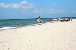 Další zajímavou pláží je pláž Seguia, známá pro svou klidnou a poklidnou atmosféru. Tato pláž, ležící na východní straně Djerby, nabízí tiché útočiště daleko od rušných turistických oblastí. O něco dále na sever najdete pláž Ras Rmel, malebné místo obklopené bujnou vegetací a dunami. Tato pláž je ideální pro milovníky přírody a ty, kteří hledají únik od davů. Kromě pláží na Djerbě se blízký region Zarzis na pevnině může pochlubit vlastním úchvatným pobřežím s lákavými plážemi, jako je pláž Sangho, která nabízí čisté modré vody a možnosti pro vodní aktivity. Tyto pobřežní poklady společně posilují atraktivitu Djerby jako přední turistické destinace v severní Africe, poskytující širokou škálu plážových zážitků pro každého cestovatele.