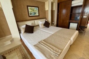 Ubytování v hotelu je komfortní a klimatizované. Každý pokoj má vlastní sociální zařízení, televizor se satelitními programy a minibar (za poplatek). Pokoje mají také balkon nebo terasu, a pokud si přejete výhled na moře, je k dispozici za příplatek. Stravování je zajištěno v rámci programu All Inclusive, který zahrnuje bufetové snídaně, obědy a večeře, a během dne jsou k dispozici lehké občerstvení. Hosté mohou také v určeném časovém rozmezí využívat neomezené množství nealkoholických a místních alkoholických nápojů.