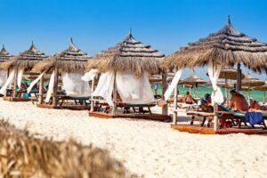 Další vyhledávanou pláží je pláž Seguia, která je známá svou poklidnou a tichou atmosférou. Nachází se na východní straně Djerby a nabízí klidné útočiště mimo rušné turistické oblasti. Na severu leží pláž Ras Rmel, malebné místo obklopené bohatou vegetací a dunami. Tato pláž je ideální pro příznivce přírody a ty, kteří hledají tiché útočiště. Vedle pláží na Djerbě se i blízký region Zarzis na pevnině pyšní krásným pobřežím s atraktivními plážemi, jako je pláž Sangho, která nabízí čisté modré vody a příležitosti k vodním aktivitám. Tyto pobřežní drahokamy společně přispívají k atraktivitě Djerby jako významné turistické destinace v severní Africe a poskytují rozmanité plážové zážitky pro všechny typy cestovatelů.