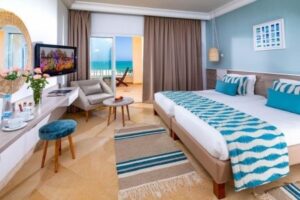 Hotelový resort nabízí široké vybavení včetně bazénů, wellness centra, fitness centra, a různých restaurací a barů. Pro hosty jsou k dispozici pohodlné pokoje s balkony nebo terasami, včetně možnosti ubytování v prostornějších suitách s výhledem na moře. Resort také pořádá tematické večeře a zábavné programy pro hosty.
