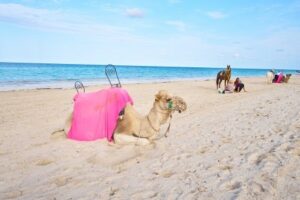 Další vyhledávanou pláží je pláž Seguia, která je známá svou poklidnou a tichou atmosférou. Nachází se na východní straně Djerby a nabízí klidné útočiště mimo rušné turistické oblasti. Na severu leží pláž Ras Rmel, malebné místo obklopené bohatou vegetací a dunami. Tato pláž je ideální pro příznivce přírody a ty, kteří hledají tiché útočiště. Vedle pláží na Djerbě se i blízký region Zarzis na pevnině pyšní krásným pobřežím s atraktivními plážemi, jako je pláž Sangho, která nabízí čisté modré vody a příležitosti k vodním aktivitám. Tyto pobřežní drahokamy společně přispívají k atraktivitě Djerby jako významné turistické destinace v severní Africe a poskytují rozmanité plážové zážitky pro všechny typy cestovatelů.