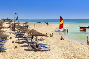 Okolí Hammametu je však rovněž plné krásných pobřežních míst. Yasmine Hammamet, moderní turistická zóna nedaleko města, nabízí vlastní písčité pobřeží a rušný přístav s množstvím obchodů a restaurací. Na jih od Hammametu se nachází půvabná pláž Nabeul, známá malebnými rybářskými loďkami a živým trhem, kde můžete nakoupit místní řemeslné výrobky a čerstvé potraviny. Dále na jih se rozkládá poloostrov Cap Bon, kde najdete další pláže, jako je pláž Kelibia, známá pro své křišťálově čisté vody a historickou pevnost, a ostrovy Kerkennah, které nabízejí poklidný únik s nedotčenými plážemi a klidným tempem života. Tyto pobřežní poklady společně tvoří z Hammametu a jeho okolních regionů pravý ráj pro milovníky pláží a slunce.