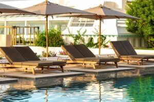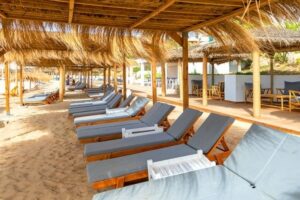 Hotel je přímo na pláži, a tak hosté mohou snadno využívat slunečníky a lehátka, která jsou na pláži poskytována zdarma. Celkově Royal Azur Thalasso Golf nabízí kombinaci luxusu, pohodlí a širokého spektra zábavy a odpočinku pro své hosty.