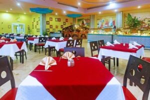 Ubytování je poskytováno v klimatizovaných pokojích s vlastním sociálním zařízením, SAT-TV, telefonem, minibarem a balkonem nebo terasou. Hotel nabízí stravování v programu All inclusive, který zahrnuje snídaně, obědy, večeře a lehké občerstvení během dne, včetně neomezeného množství nápojů.