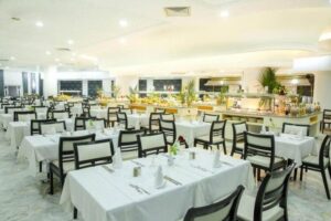 Stravování je zajištěno programem all inclusive, který zahrnuje snídaně, obědy a večeře formou bufetu. Kromě hlavních jídel jsou hostům k dispozici lehké občerstvení a místní alkoholické a nealkoholické nápoje během dne.