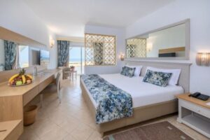 Hotelové pokoje jsou dvoulůžkové s možností přistýlky. Každý pokoj je vybaven vlastní koupelnou, televizí, klimatizací a balkonem. Nabídka ubytování je vhodná pro páry i rodiny.