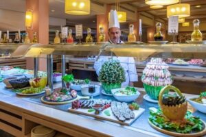 Stravování je zajištěno formou all inclusive, zahrnující plnou penzi formou bufetu, lehké svačiny, pozdní večeře a neomezené množství nápojů. Hotel má dobré hodnocení díky své výhodné poloze u pláže a rozsahu poskytovaných služeb. Animace pro děti i dospělé, sportovní aktivity a lázeňské centrum patří k nabídce tohoto komplexu. Za poplatek jsou k dispozici minibar na pokoji, vodní sporty na pláži a lázeňské procedury. Privátní široká písčitá pláž s pozvolným vstupem do moře a širokou nabídkou vodních sportů je v bezprostřední blízkosti hotelu, a hostům jsou k dispozici lehátka, slunečníky a plážové osušky.