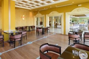 Stravování je nabízeno v rámci programu All Inclusive, zahrnujícího plnou penzi formou bufetu, lehké občerstvení během dne a neomezené množství místních alkoholických a nealkoholických nápojů. Hotel také poskytuje bohatý animační program pro děti i dospělé, různé sportovní aktivity a wellness procedury. Pláž poblíž hotelu je široká s pozvolným vstupem do moře a nabízí mnoho možností pro vodní sporty. Tento hotel je ideální pro ty, kteří hledají dovolenou u moře s přístupem k různým aktivitám a zábavě.