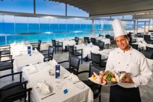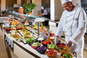 Stravování zahrnuje polopenzi, která zahrnuje snídaně a večeře formou bufetu v hlavní restauraci. Za příplatek si hosté mohou objednat i obědy.