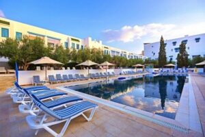 V samotném resortu najdete pohodlné ubytování v pokojích vybavených veškerými moderními amenitami, a můžete si vychutnat různorodou stravu v místních restauracích a kavárnách. Kromě toho je zde bazén, kde si můžete zaplavat a relaxovat, a hotel také nabízí širokou škálu sportovních aktivit a zábavy, včetně tenisu, minigolfu, animačních programů a večerních show.